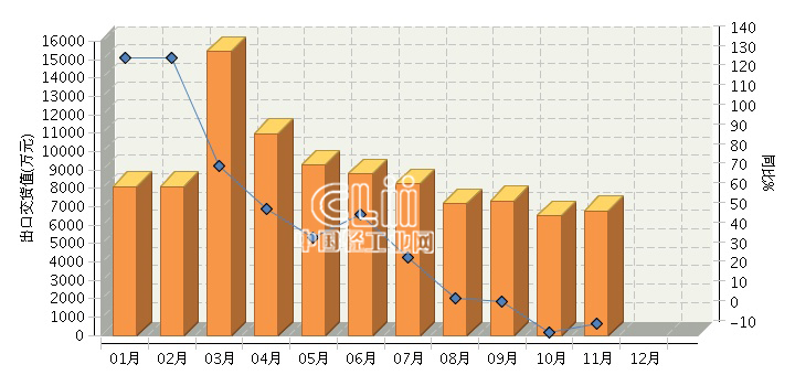 2016年1月~11月,安徽照明灯具制造行业累计完成出口交货值92,547.40万元,同比增长34.64%。其中:11月份完成出口交货值6787.5万元,同比增长-4.18%。