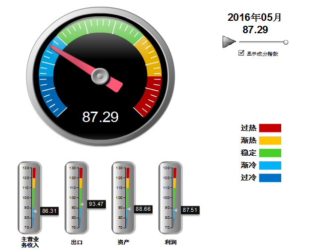 图1 2016.5月工艺美术行业景气指数分指标显示状况