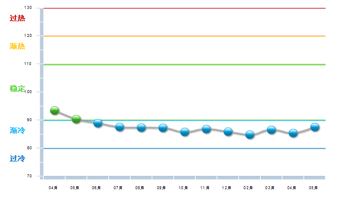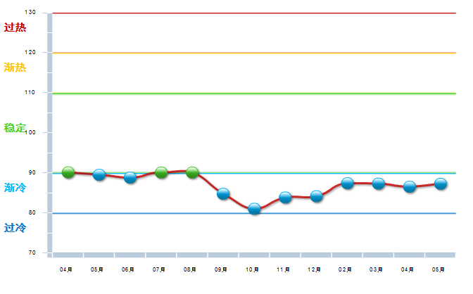 2015年2月开始主营业务指数降至渐冷区域运行。(参见图3)