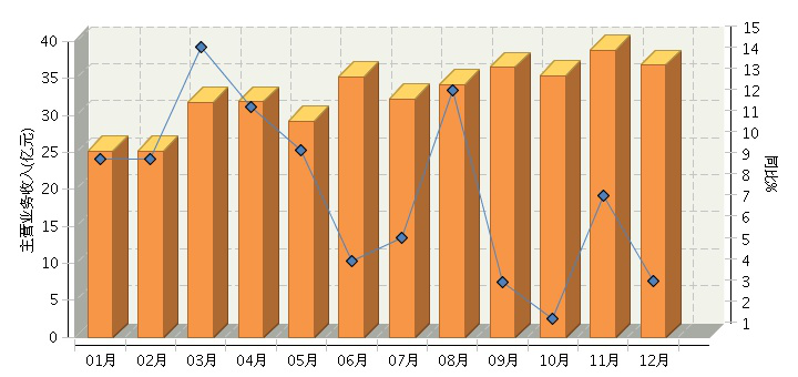 ——主营业务收月度走势:均保持同比增长态势,总体走势好于前两年。2016年1~12月,全国乐器行业累计完成主营业务收入392.33亿元,同比增长7.56%。其中:3月份主营业务收入同比增长14.71%;4月份同比增长11.88%;5月份同比增长9.88%;6月份同比增长4.62%;7月份同比增长5.72%;8月份同比增长12.7%;9月份同比增长3.62%;10月份同比增长1.86%;11月份同比增长7.73%;12月份主营业务收入36.77亿元,同比增长3.67%。