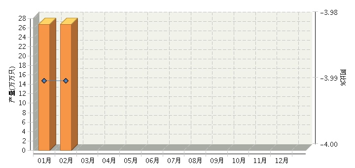根据国家统计局公布数据,2017年1~2月,全国原电池及原电池组(折R20标准只)行业累计完成产量同比增长-3.99%。其中:2月份完成产量同比增长-3.99%。2016年全国原电池及原电池组行业月度产量及同比如下图所示。