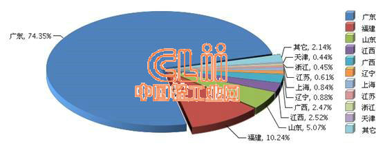 2017年一季度,我国陶瓷砖出口额的七成以上由广东完成。据海关数据显示,2017年1~3月广东陶瓷砖累计出口6.78亿美元,同比下降25.82%,占我国陶瓷砖出口总额74.35%,出口占比较上年同期提高了12.42个百分点。