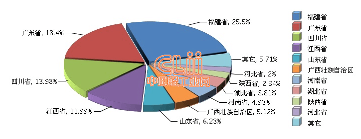 从产量增速看,福建、河北、广西、四川增速居前,均高于全国平均增速;产量前十地区中,只有山东增速回落,同比下降18.02%。