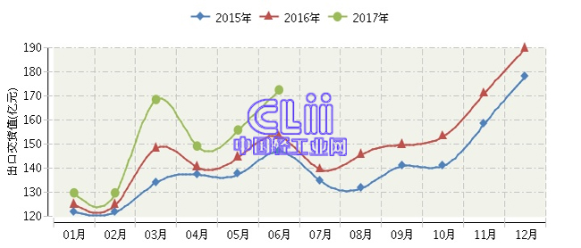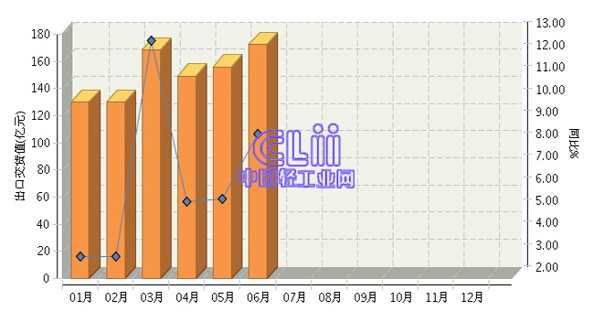 2017年1~6月全国家具行业出口交货值累计同比增长6.96%