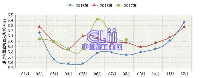 2017年1~8月全国家具行业累计主营业务收入利润率为6.04%