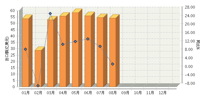 中国轻工业经济运行及预测预警系统监测显示:2017年8月份,全国塑料制品行业完成出口额54.06亿美元,同比增长2.73%,增速比7月份回落8.37个百分点。1月~8月,塑料制品行业累计完成出口额407.31亿美元,同比增长9.06%。