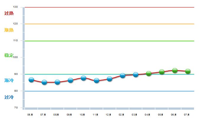 图2 2016.6----2017.7月工艺美术行业景气指数变化态势