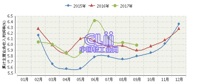 2017年1~9月全国家具行业累计主营业务收入利润率为5.99%
