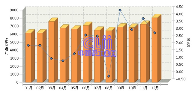 全国家具行业连续三年月度产量对比