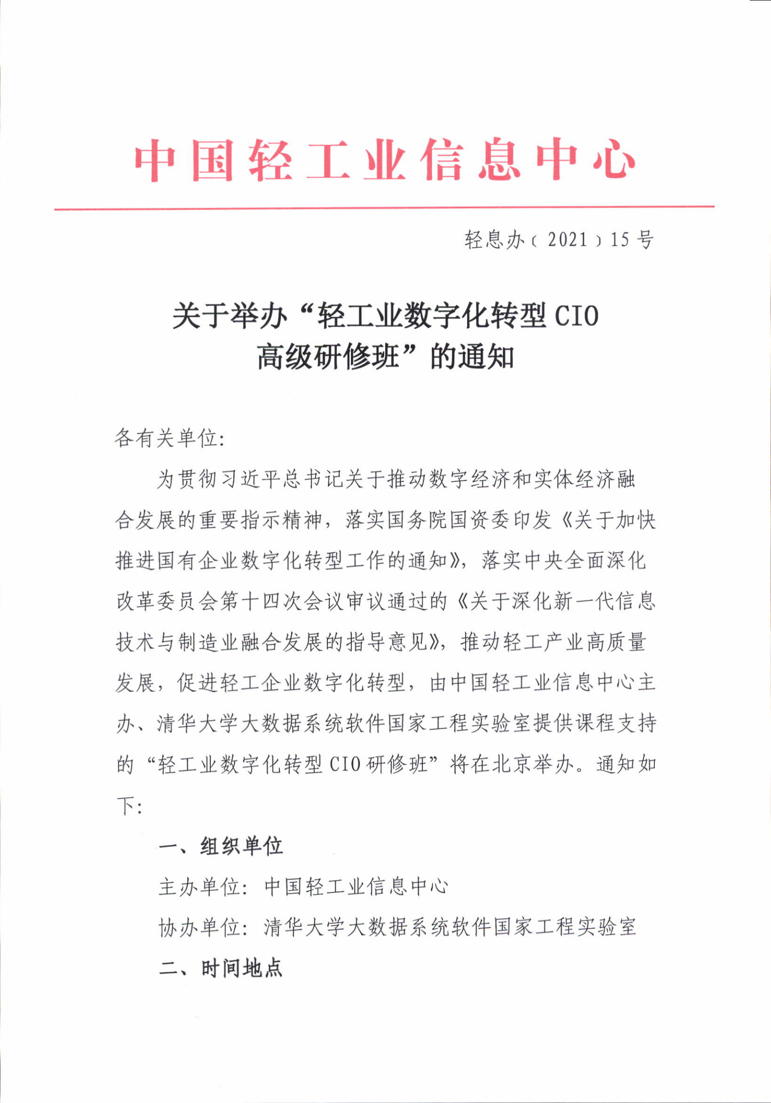 | 1、 | 关于举办“轻工业数字化转型CIO高级研修班”的通知 |