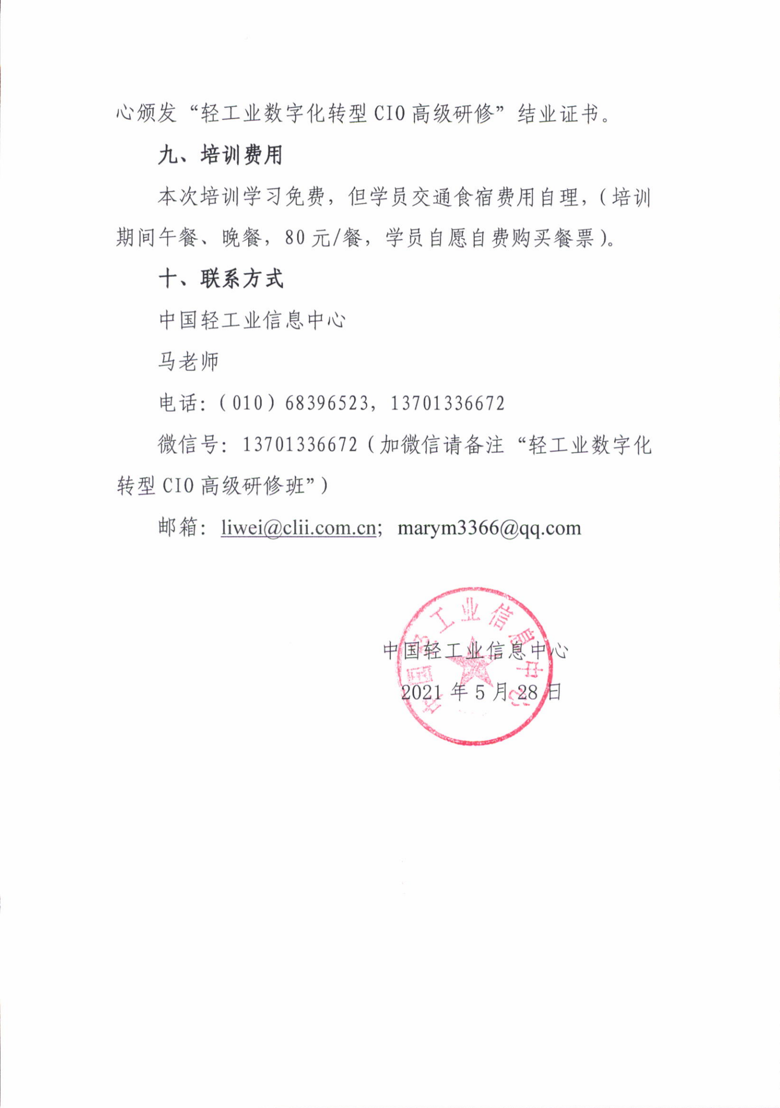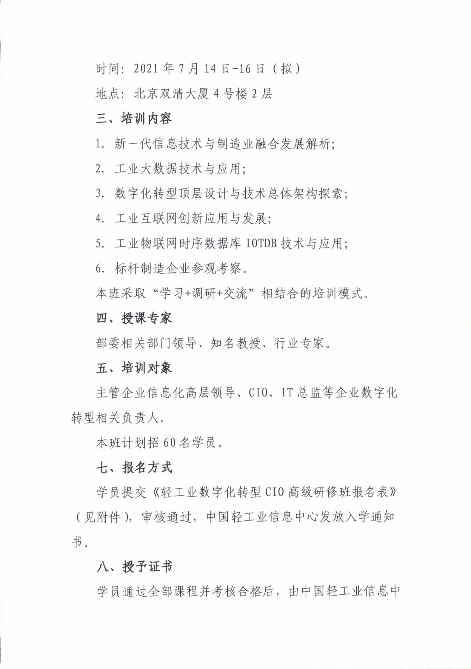 | 2、 | 附件:轻工业数字化转型CIO高级研修班报名表 |