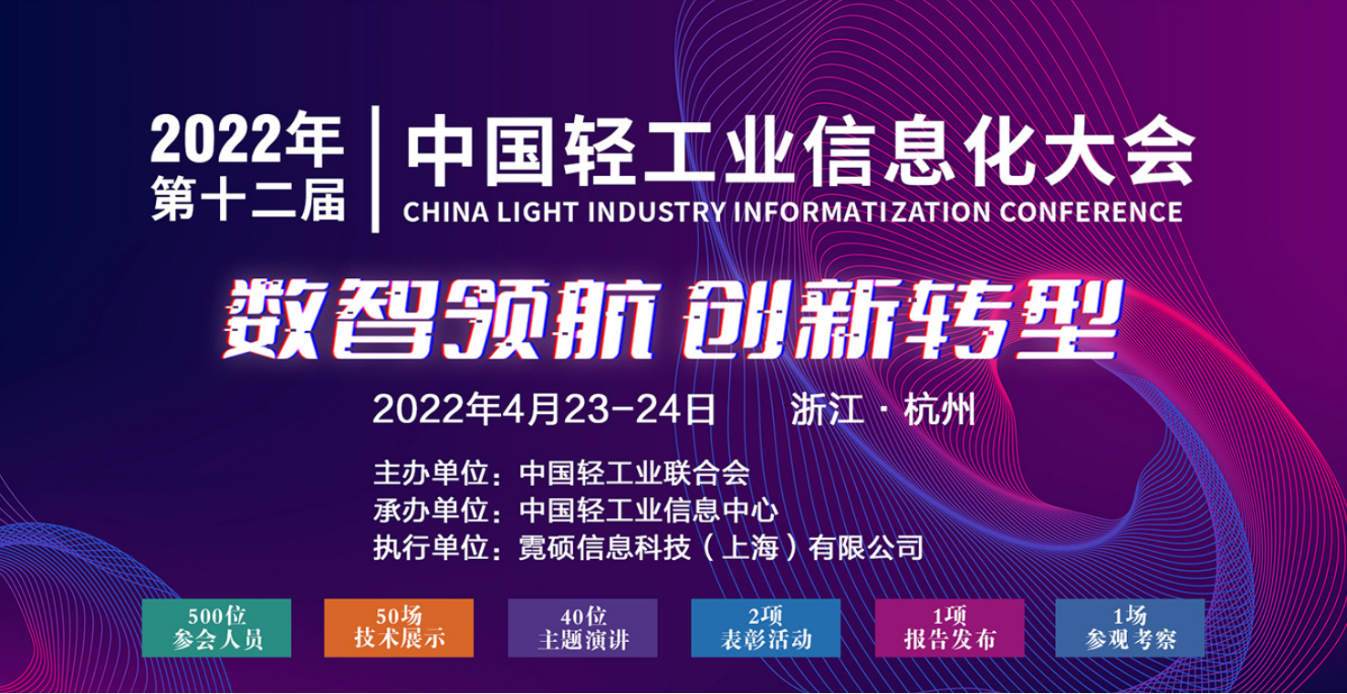 承办,会议地点为杭州。此次大会的主题为“数智领航 创新转型”,大会将总结和推广轻工业数字化转型创新成果与实践经验,表彰先进典型,搭建新一代信息技术与产业交流平台,推动轻工业高质量发展。