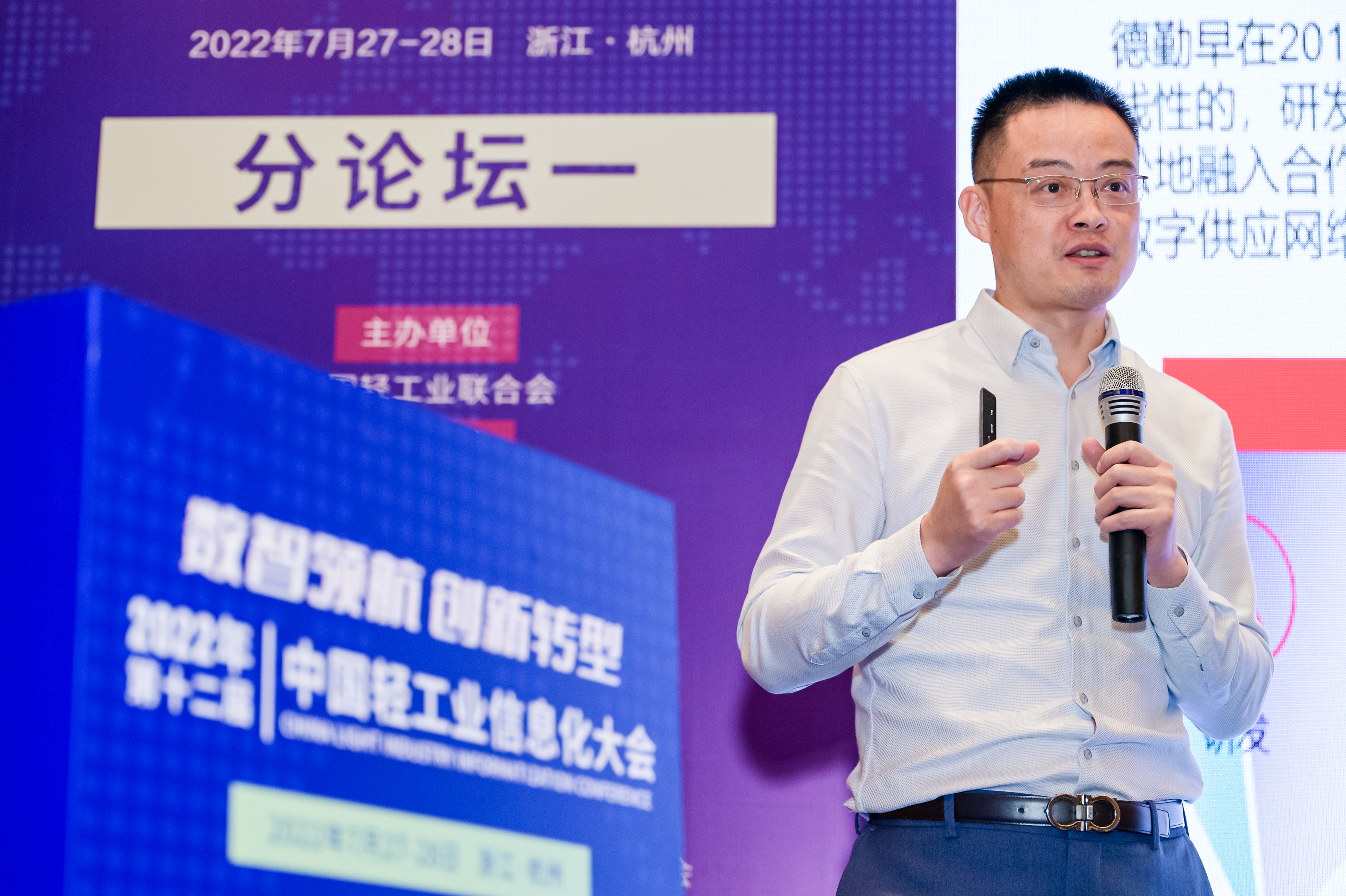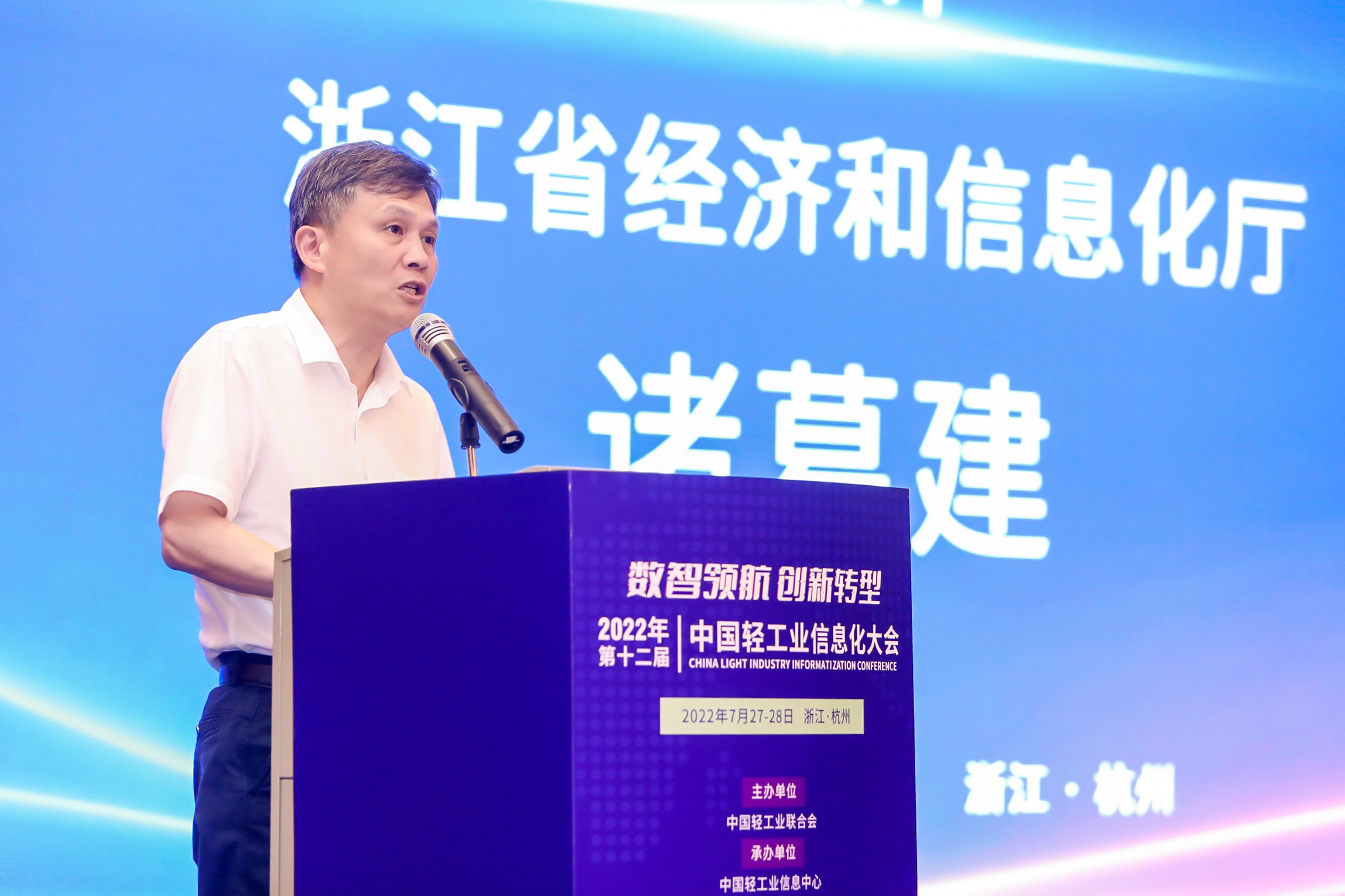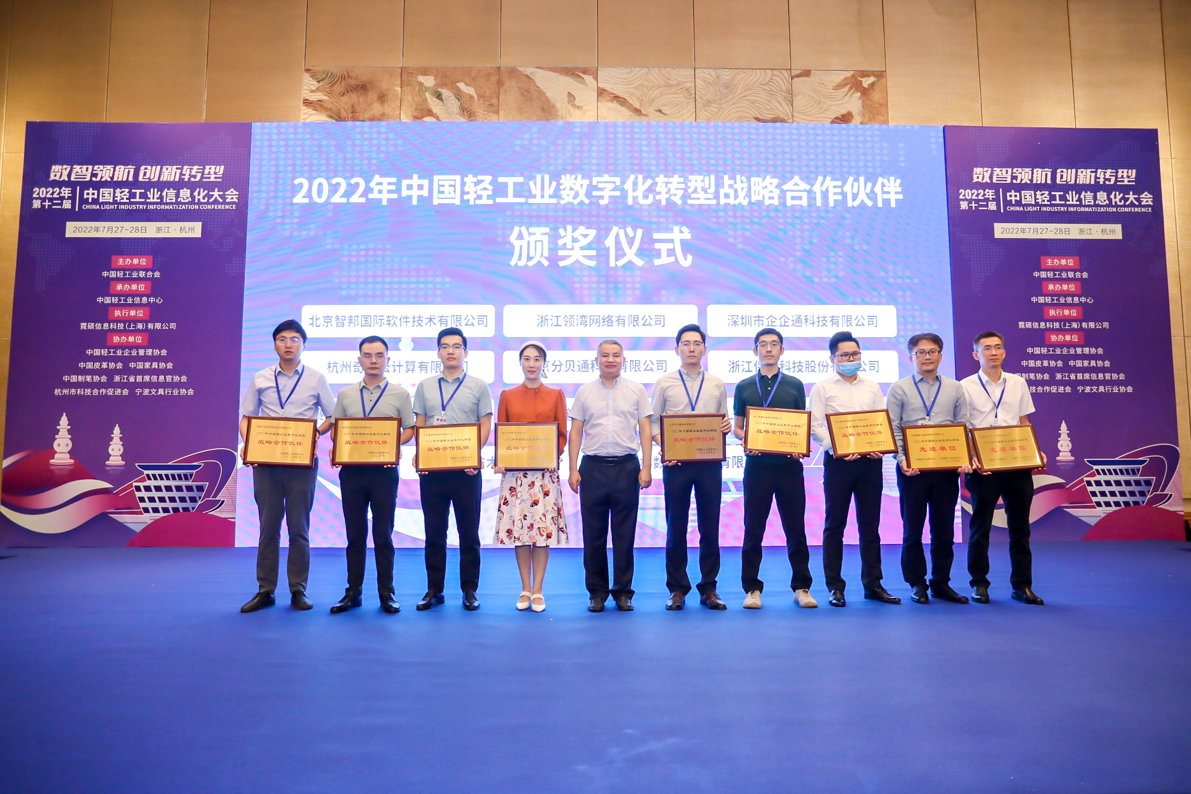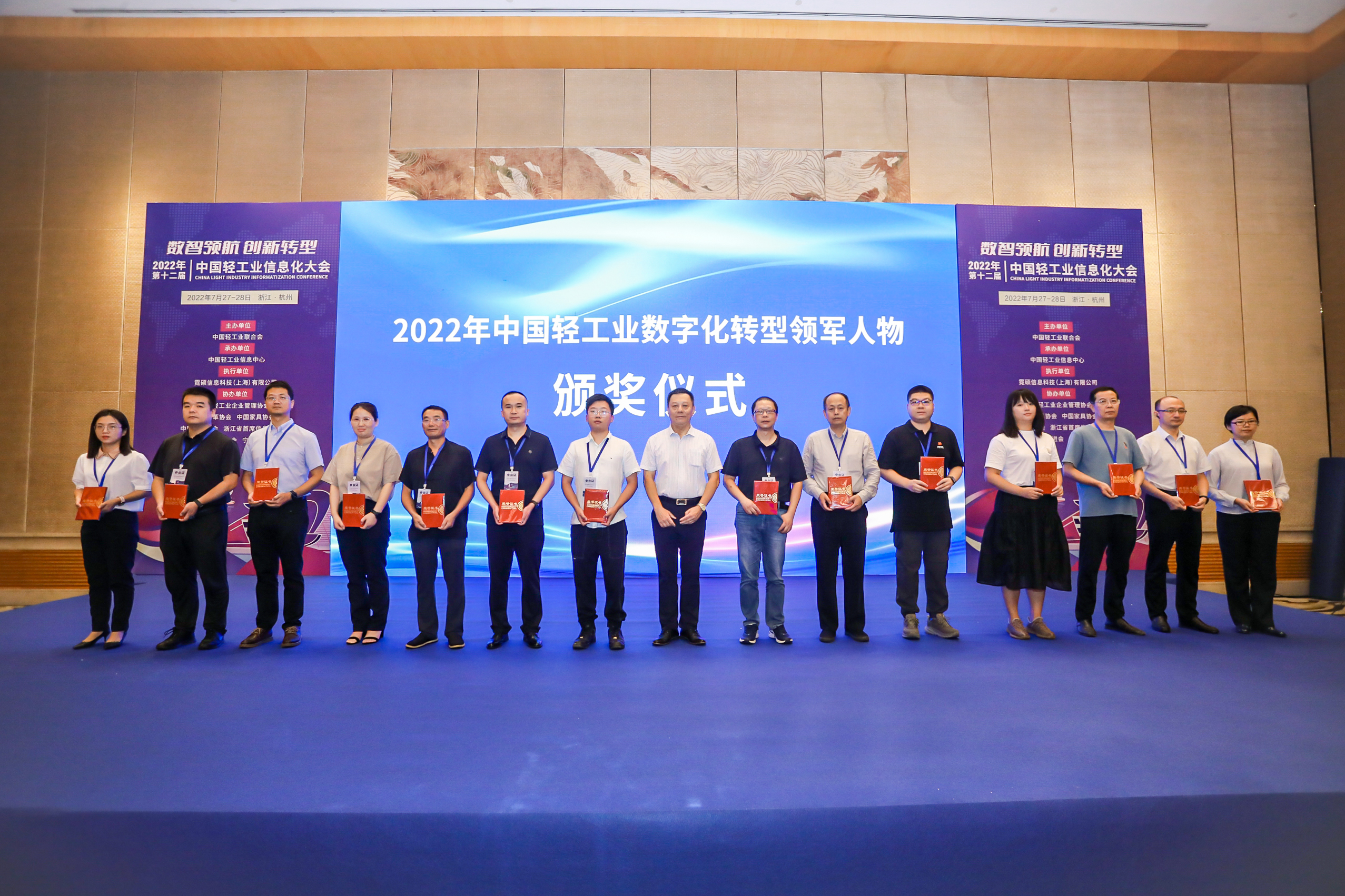 承办,中国轻工业企业管理协会、中国皮革协会、中国家具协会、中国制笔协会、浙江省首席信息官协会、杭州市科技合作促进会、宁波文具行业协会等协办的“第十二届中国轻工业信息化大会”圆满举行。此次会议以“数智领航 创新转型”为主题,旨在深入贯彻落实党中央国务院两化深度融合战略部署,促进数字技术和实体经济深度融合,赋能轻工业转型升级。会上还举行了2022年中国轻工业数字化转型先进单位、2022年中国轻工业数字化转型领军人物表彰仪式。