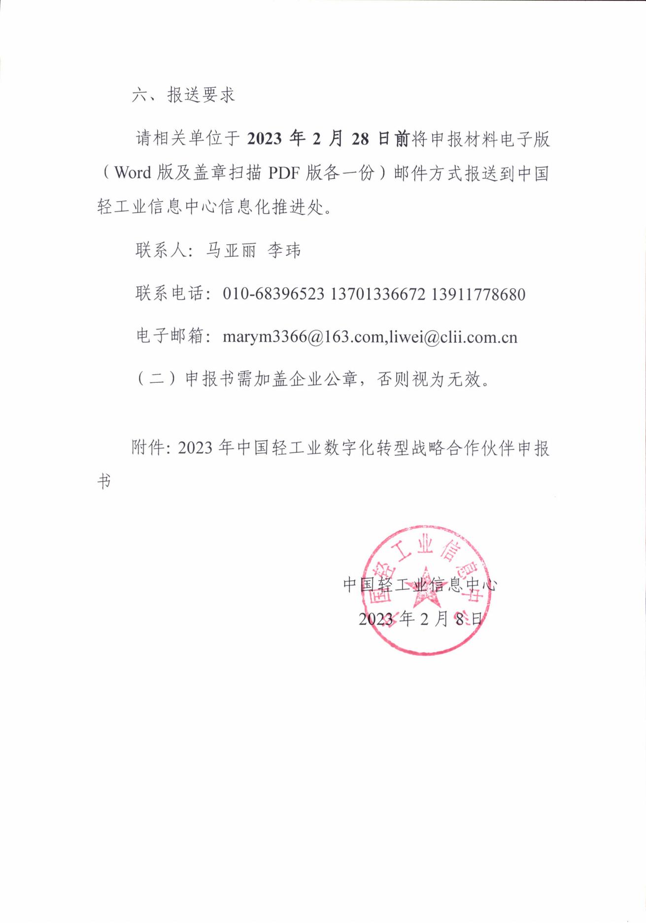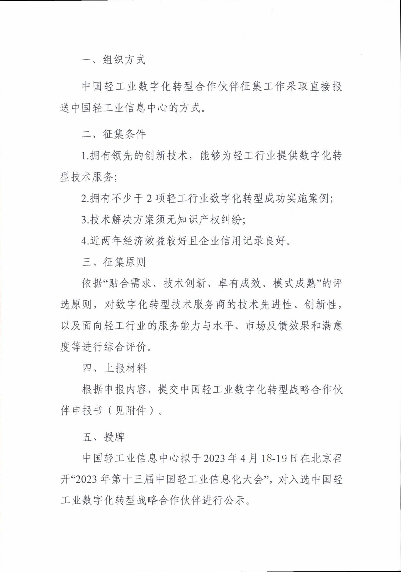 | 2、 | 2023中国轻工业数字化转型战略合作伙伴申报书 |