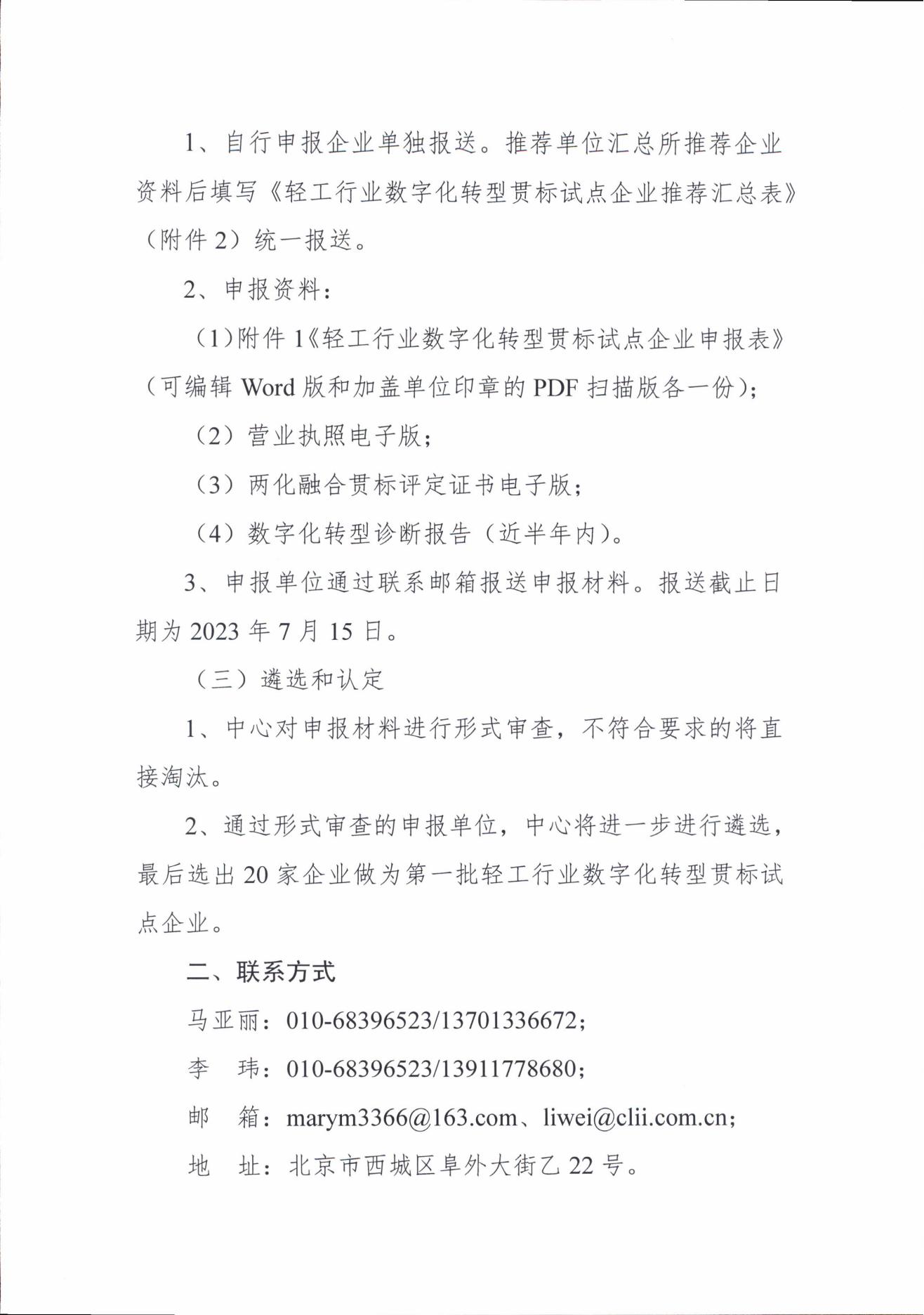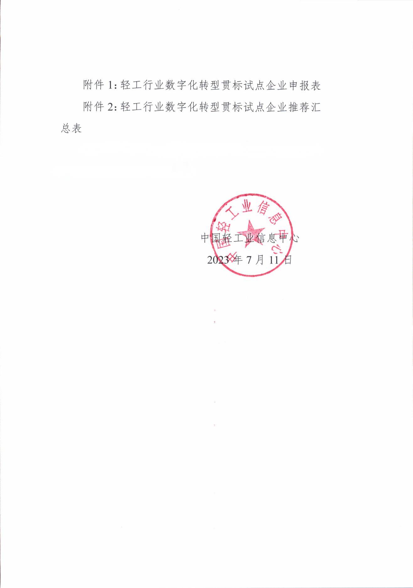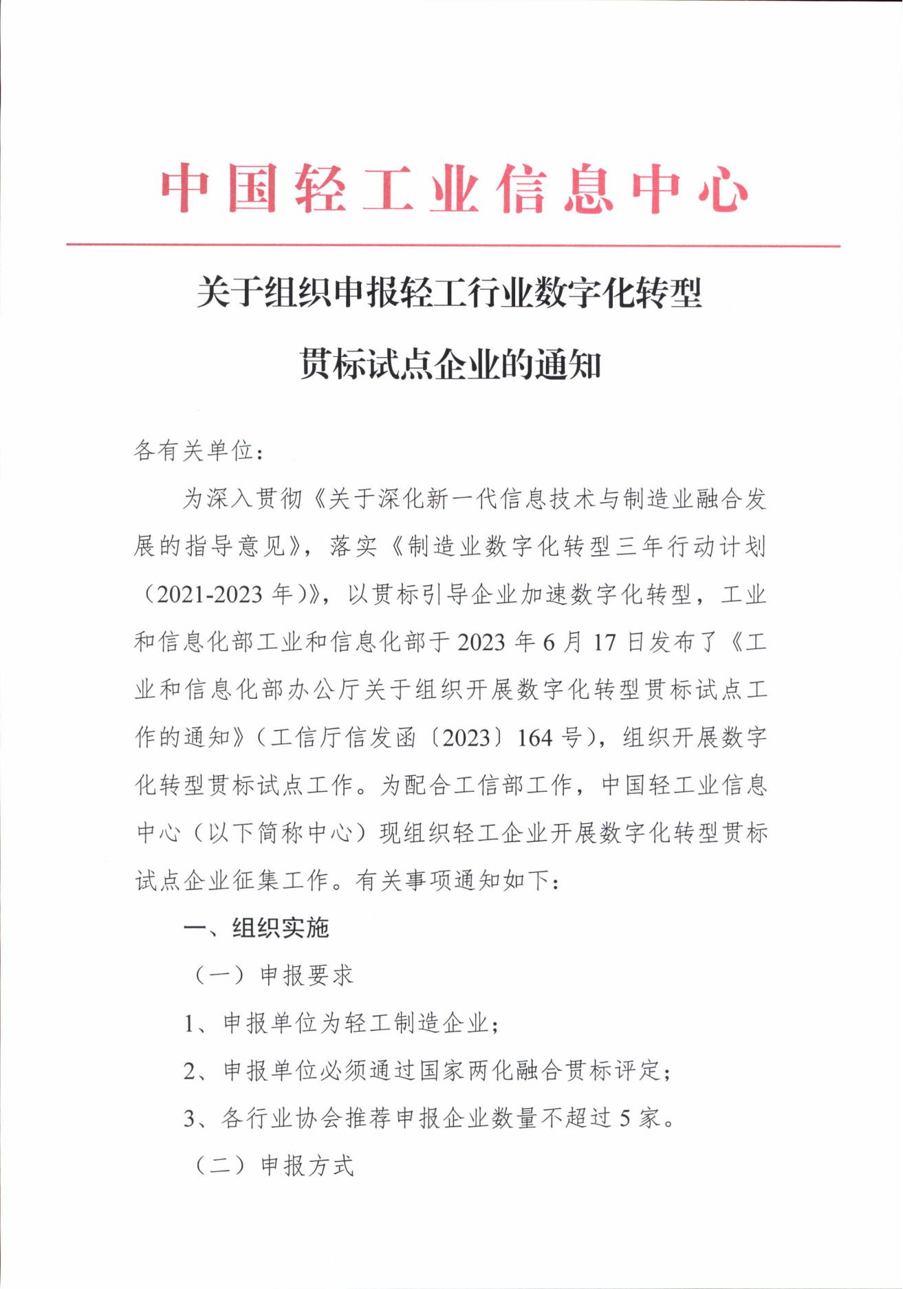(以下简称中心)现组织轻工企业开展数字化转型贯标试点企业征集工作。有关事项通知如下: