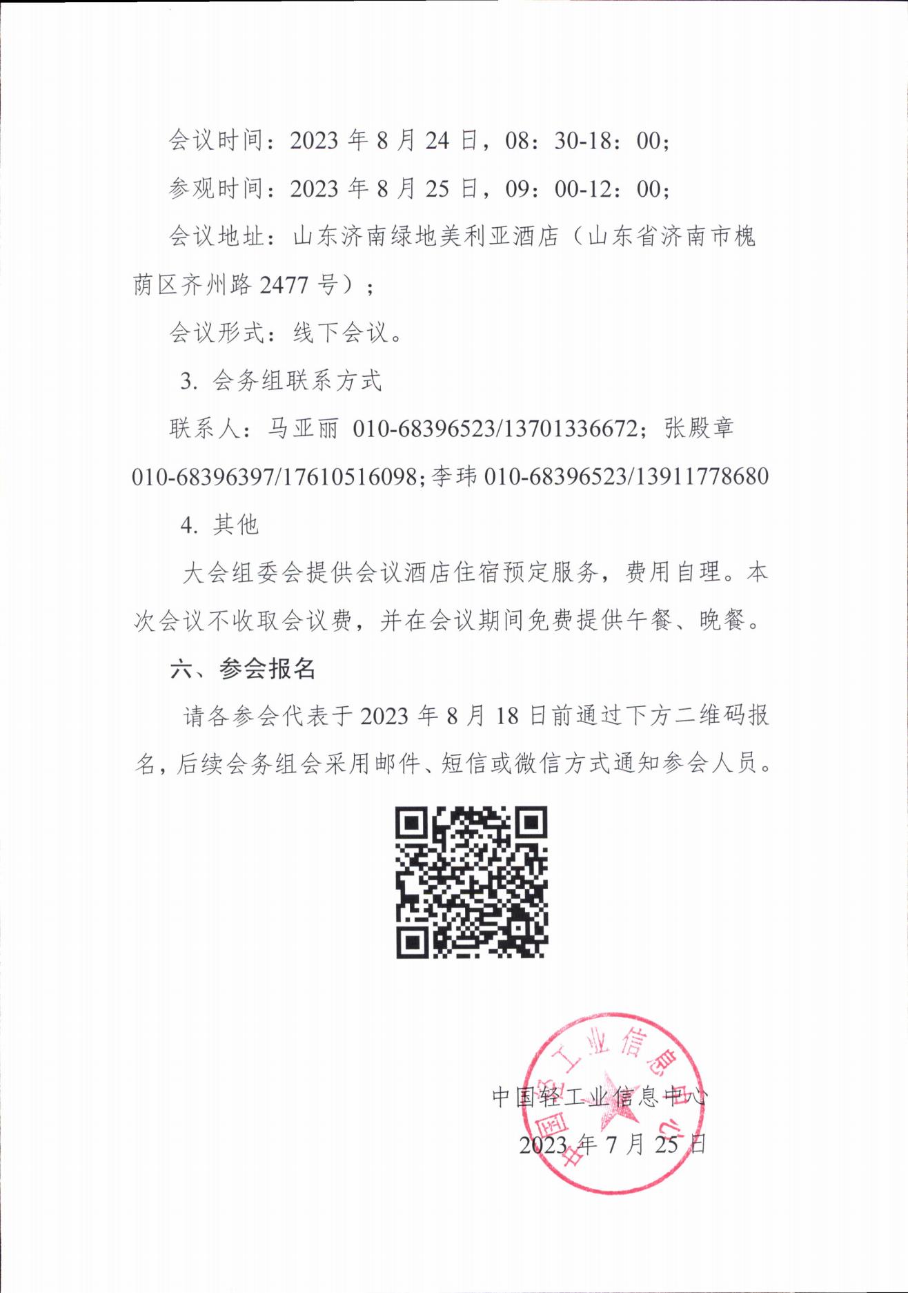 请各参会代表于2023年8月18日前通过下方二维码报名,后续会务组会采用邮件、短信或微信方式通知参会人员。