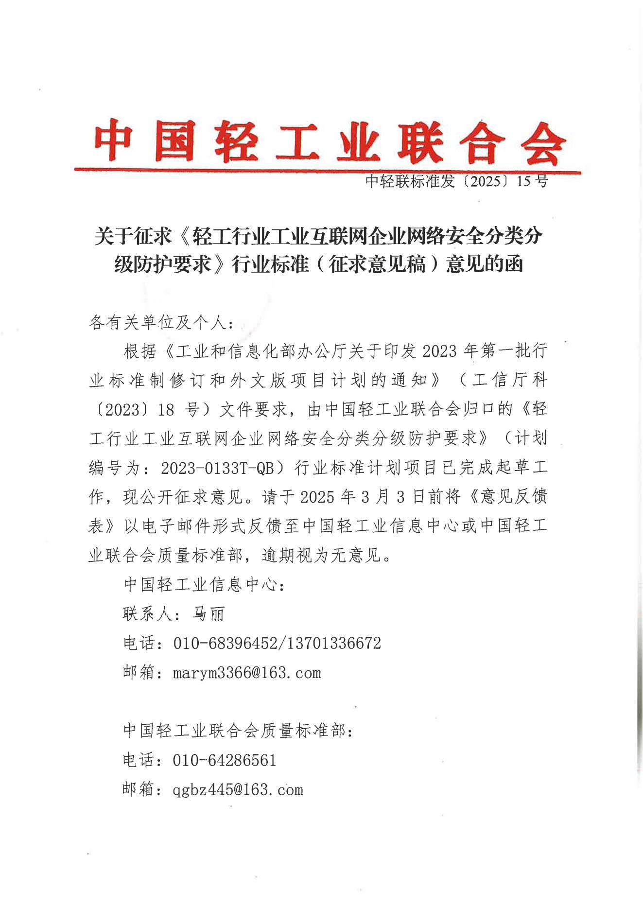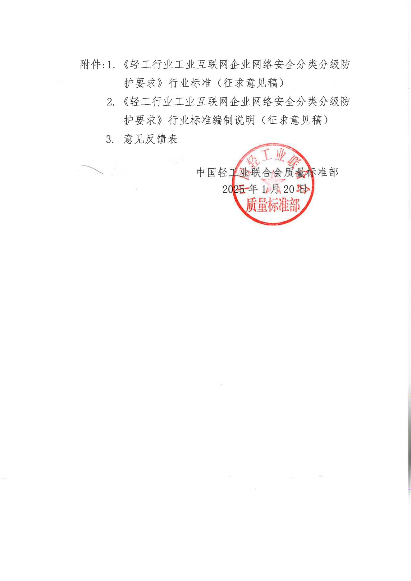 关于征求《 工业互联网企业网络安全分类分级防护要求》行业标准(征求意见稿)意见的函