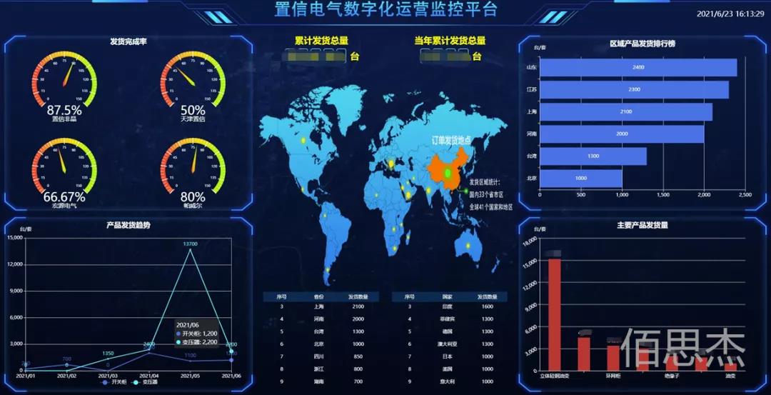 针对置信电气总部与各子公司业务汇报数据不及时准确的问题,通过在置信电气总部部署系统环境,并通过可视化看板实时展示各子公司生产进度、发货情况、财务等方面的信息。