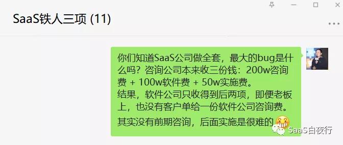 这里面的关键是机制不同:我们SaaS公司里,无论如何售前与实施岗位是分离的;而在这些做咨询+实施的小企业里,老板/合伙人是每个项目的核心。他们长期服务一批企业,更懂每个客户、更重视每个客户的交付成败。