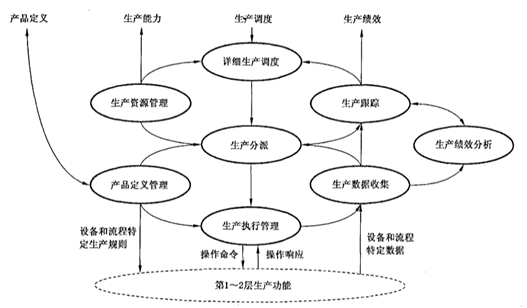 (1)生产资源管理:提供关于生产资源的一切信息,包括人员、物料、设备和过程段(process segment),并向企业业务管理系统(如ERP)报告当前资源的可用状态。
