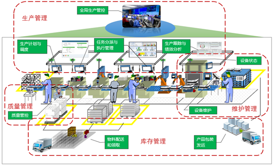 (5)生产执行管理:通过一组指导工作执行的活动(如通过生产运转次序的合理安排来选择、启动和移动工作单元)来保证分派的作业任务得以完成,包括生产过程的可视化。