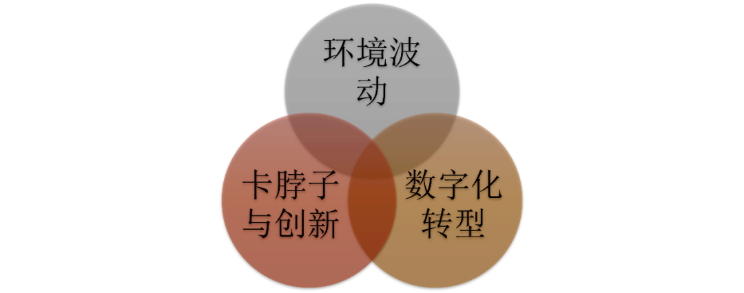 对于大多数中国企业来说,无论是国有企业还是民营企业,现在面临的一个很大的新课题,主要来自于三个方面:环境的高度波动性;企业的数字化转型;国际科技竞争的背景下卡脖子技术和科技创新问题。