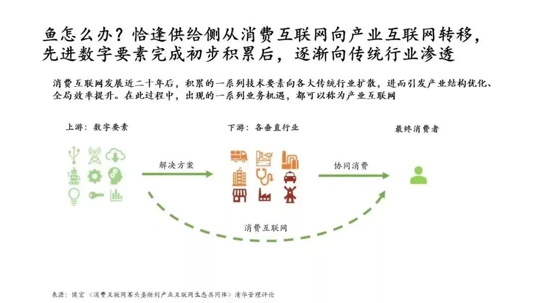 这就是一个上游的数字要素通过解决方案来武装垂直行业里的传统企业,最终触达消费者的过程。