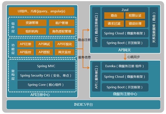 平台面向开发者提供基于API的开放能力,提供API注册中心和API网关,实现API统一注册、发布、测试、调用及监控功能,实现从设备接入、应用开发、应用部署的全流程解决方案,架构如下图所示。