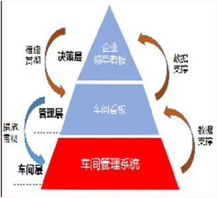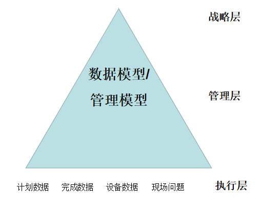 管理层希望看到更多更全面的信息,辅助工厂决策,但是管理层所有的信息都来源于执行层,所有管理层迫切的希望执行层将工厂所有的数据传送到系统当中,然后根据数据模型或者管理模型像漏斗一样筛选出自己需要的数据,如上图所示。