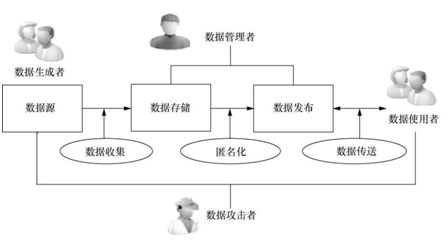 (4)数据攻击者(data attacker):指那些为了善意或恶意的目的从发布的数据集中企图获取更多信息的人。数据攻击者是一种特殊类型的数据使用者。