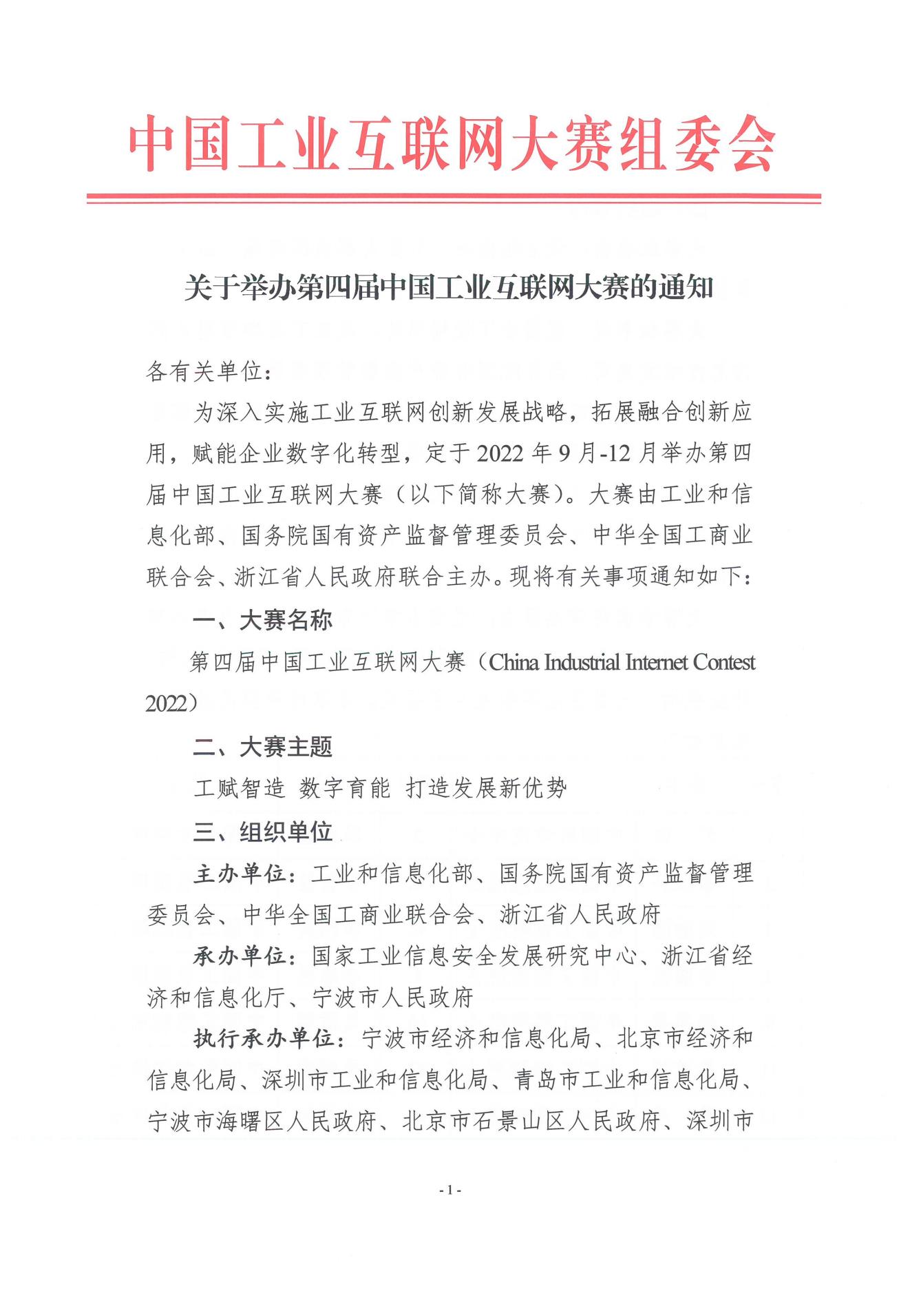 | 1、 | 关于举办第四届中国工业互联网大赛的通知(组委会) |