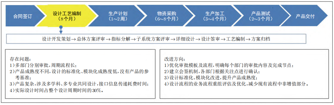 雷达电子装备的设计多是针对新产品的设计,设计的标准化、模块化成熟度低,设计过程中各种影响因素较多,有效的设计时间只占整个设计周期的30%左右,具体存在的问题及改进方向如图4所示。