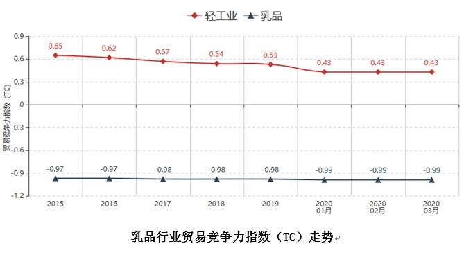 2020年3月乳品行业贸易竞争力指数-0.99