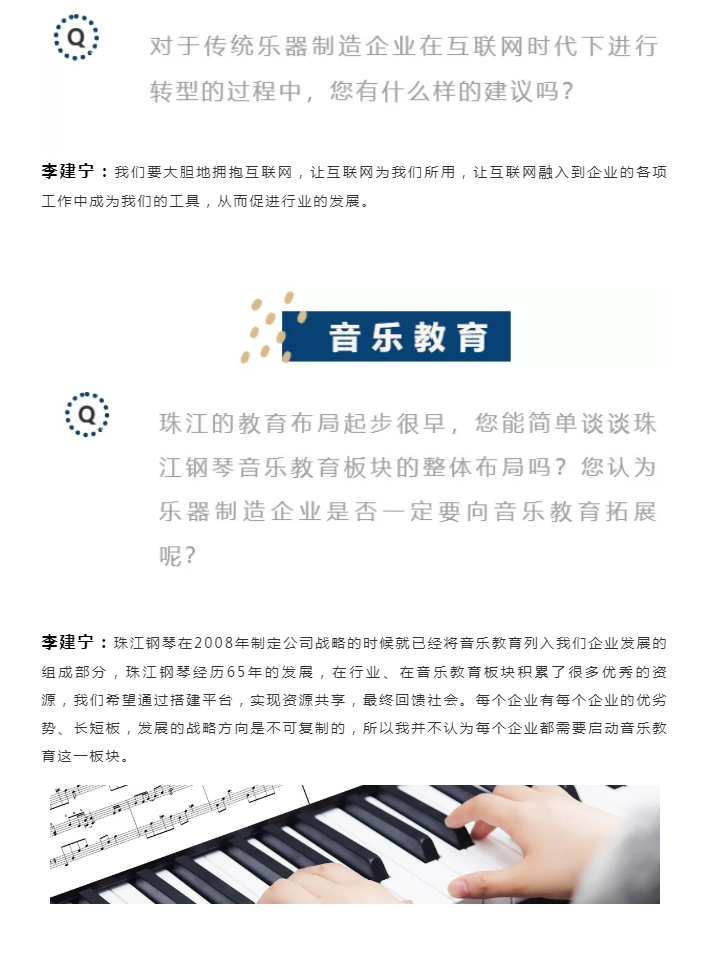 今天,珠江已然是“全球最大的钢琴制造商”之一,以及具有国际竞争力的中国乐器龙头企业和颇具国际影响力的民族品牌。此次上海国际乐器展来到广州,走访了珠江钢琴,并对珠江钢琴集团党委书记、董事长李建宁先生进行了独家专访,就让我们一起通过视频来回顾珠江走过的六十五年民族品牌成功之路。
