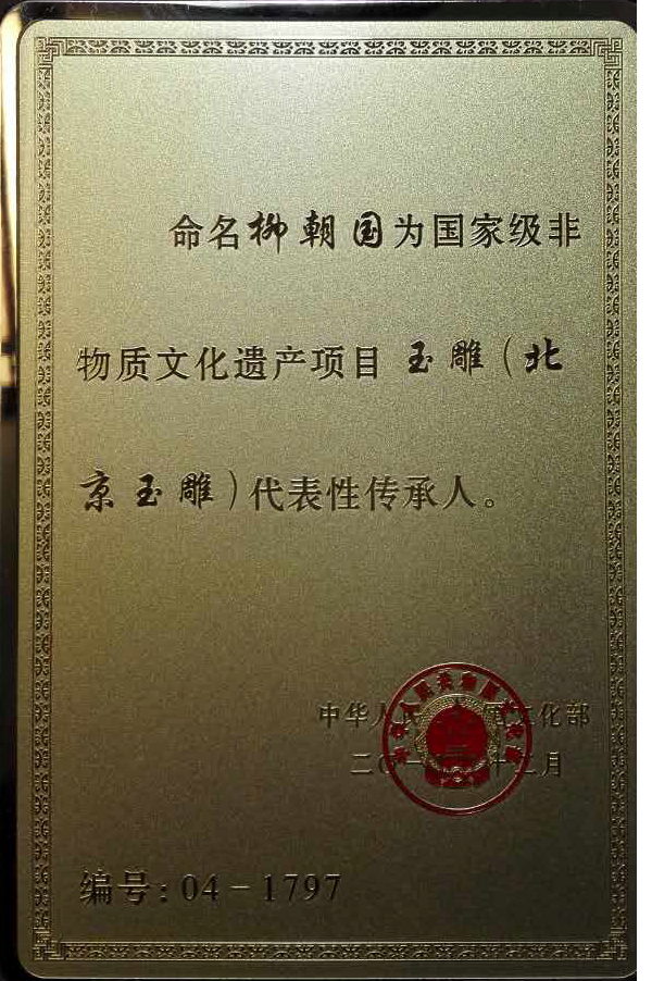 柳朝国 男,生于1945年,中国工艺美术大师,北京朝阳雍玺玉器厂厂长。