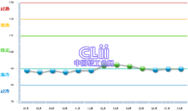 8月,家具行业利润景气指数尽管仍在“渐冷”区间运行,仅比7月微升了0.02个百分点,但已接近该区域的上限边缘线(图1)。