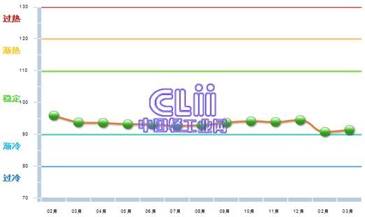 图1 2013年2月~2014年3月家具行业主营业务收入景气指数变化态势