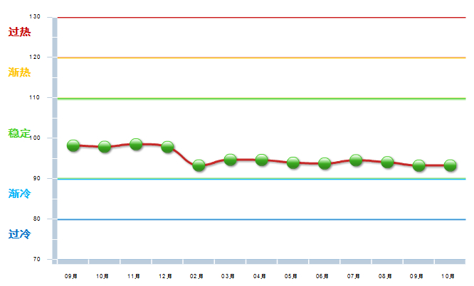 图2 2013.9—2014.10 五金行业景气指数变化态势
