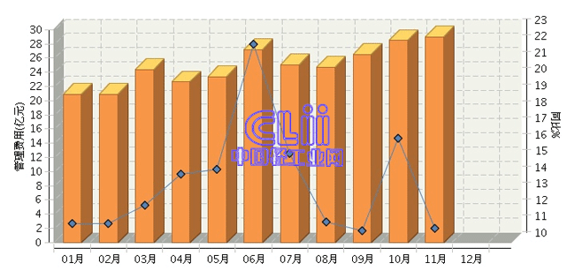 根据国家统计局公布数据:2014年1~11月,全国家具行业的累计管理费用为273.38亿元,同比增长13.66%。其中:11月份管理费用同比增长10.88%。