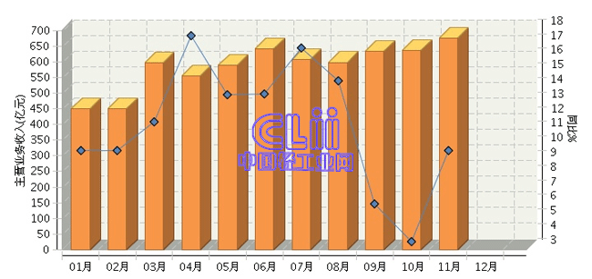 图3 2014年1~11月家具行业规模以上企业月度主营业务收入及增速