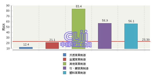 图5 2015年一季度家具子行业规模以上企业累计利润总额增速情况