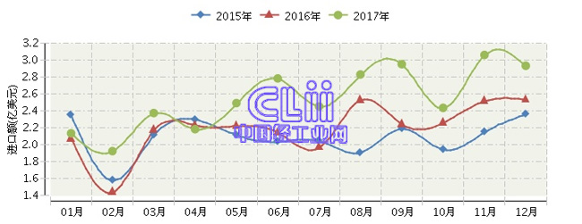 全国家具行业连续三年月度进口额对比