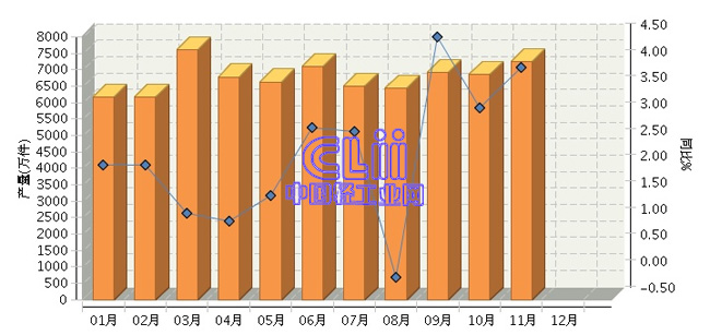 根据国家统计局公布数据:2017年1~11月,全国家具行业累计完成产量73520.59万件,同比增长3.47%。其中:11月份家具产量同比增长3.91%。