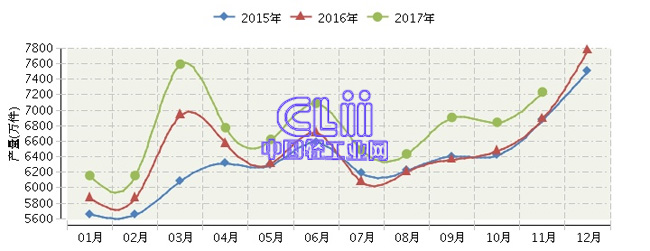 2017年全国家具行业月度产量及同比