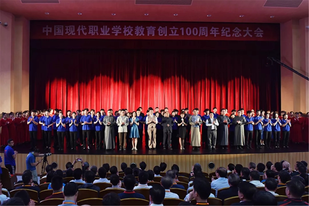 纪念大会前夕,我校师生通过音诗画表演,再现了中国现代职业学校教育的百年历程,歌颂了先贤们“职教救国”的高尚情操以及对国家民族的深厚情感。