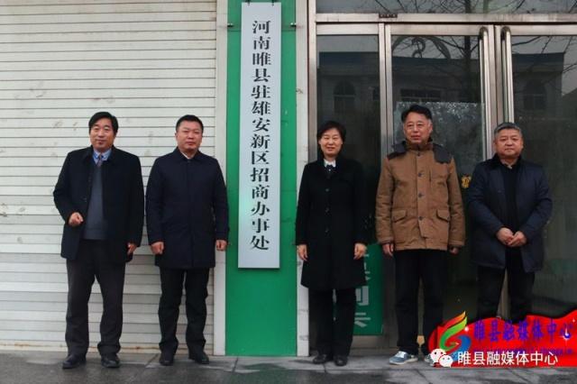 推介会后商丘市人民政府副市长牛亚东,市商务局局长薛涛,县委书记吴海燕,县委常委、常务副县长贾发生,副县长李涛为睢县驻雄安新区招商办事处揭牌。