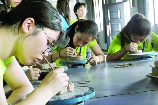 7月13日,参加2019“中国寻根之旅”夏令营山西运城营的80多名来自美国、加拿大、意大利的华裔青少年,来到全国历史文化名城、“中国鼓乐艺术之乡”“中国澄泥砚之都”——运城市新绛县,寻根体验千年鼓乐绛州鼓乐之源,探秘中国四大名砚之一绛州澄泥砚、绛州木版年画、绛州云雕、绛州石雕、绛州宫灯、绛州青铜器、绛州玉雕等国家级和省级非遗传统手工制作技艺,聆听参与《弟子规》大讲堂,感悟体验传统文化洗礼。