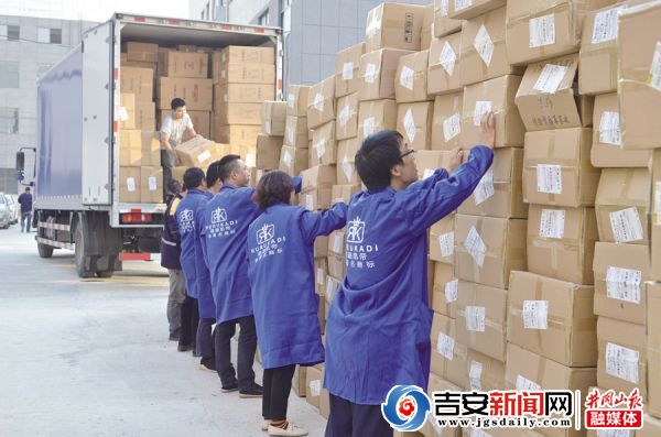 11月13日,新干县华兴箱包有限公司员工正在贴单。近年来,新干县箱包产业大力发展电商业务,仅“双11”一天,华兴箱包线上销售额就达1000万元,全县箱包电商销售额累计达4亿元。