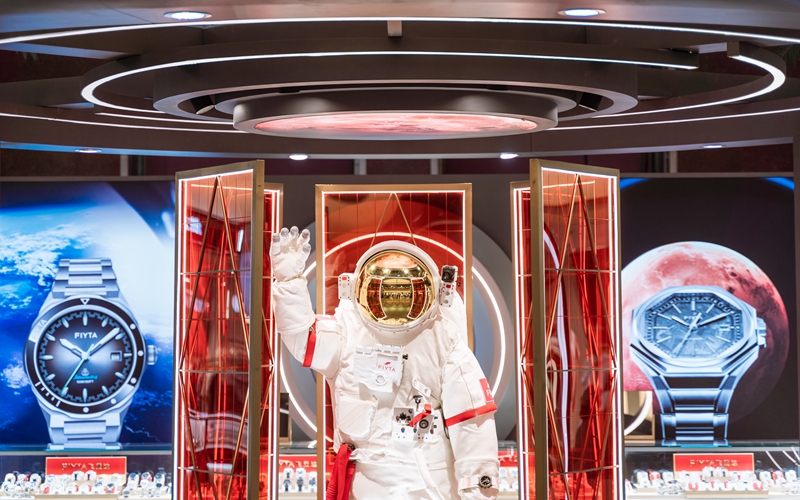 人民网深圳11月14日电 (王星、刘森君)走进飞亚达计时文化中心,一块块航天表陈列在充满时尚科技感的展品空间。
