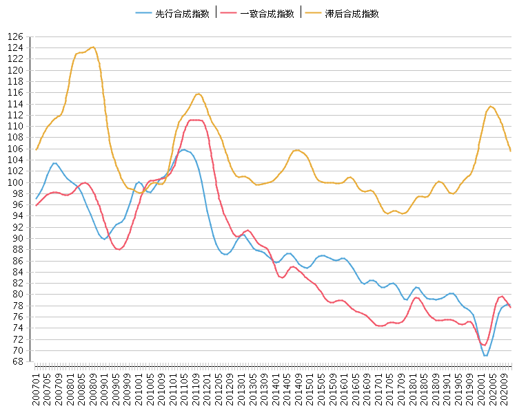 食品行业景气指数显示:2020年11月,该行业一致合成指数为77.84点(2010年=100),比上月下降0.65点; 先行合成指数为78.21点(2010年=100),比上月上升0.05点; 滞后合成指数为105.72点(2010年=100), 比上月下降1.57点。